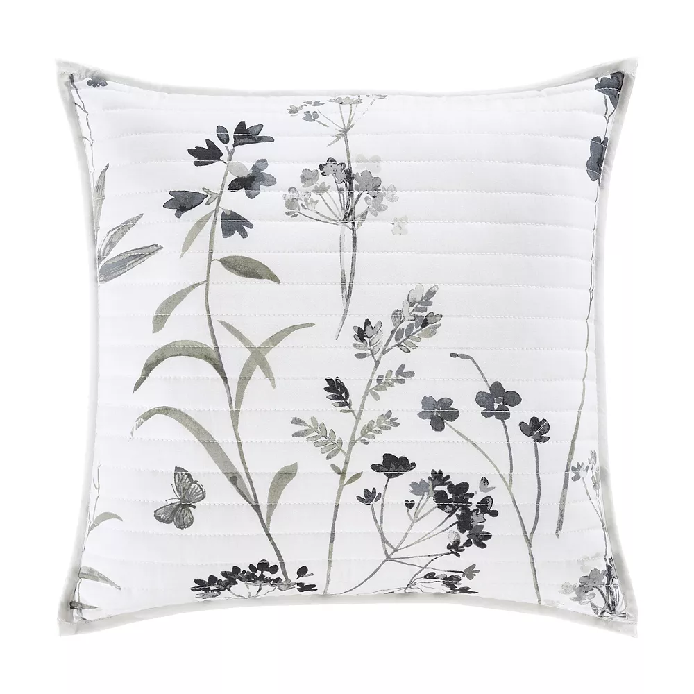 Add a trendy look to your bed with this Five Queens Court Bonnie Gray 18″ Square Quilted Decorative Throw Pillow.