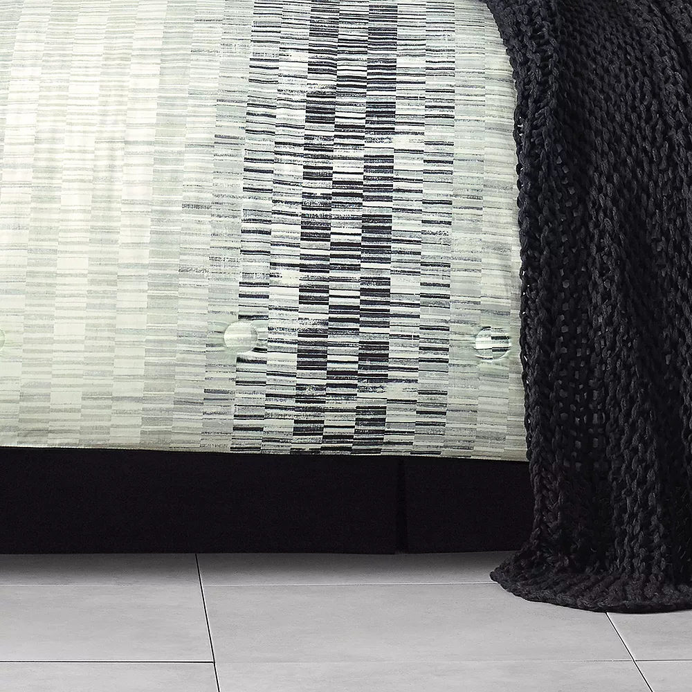 - Featuring a striking print with a gradiating mix of distressed textures in hues of black, charcoal, and soft greys