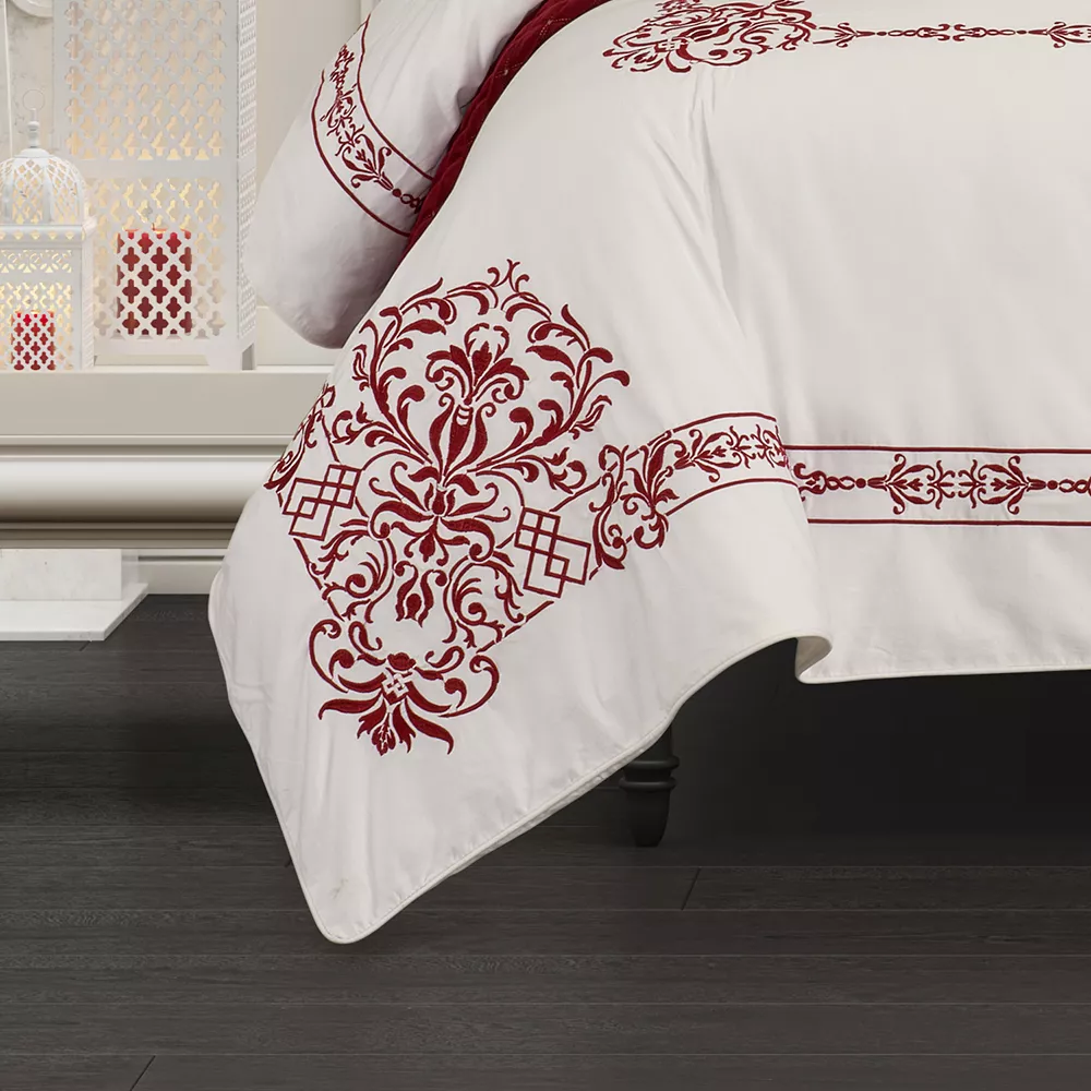 Give your bedroom the royal treatment with this three-piece duvet cover set with shams from Five Queens Court.