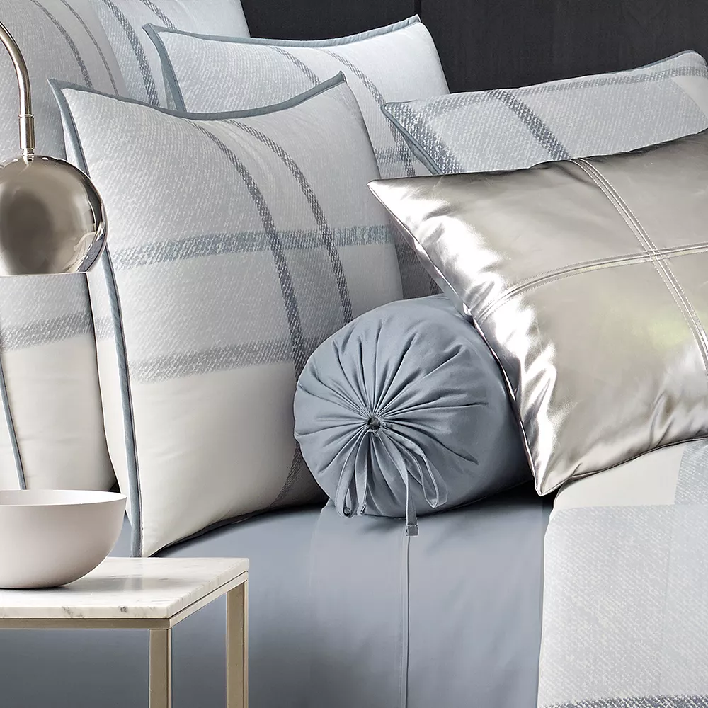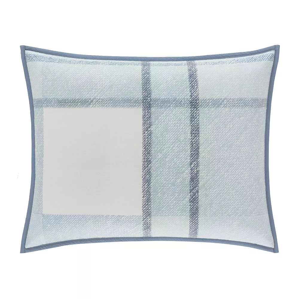 This Langdon Blue sham from Five Queens Court features a modern plaid design, and is printed on plush, brushed cotton twill.