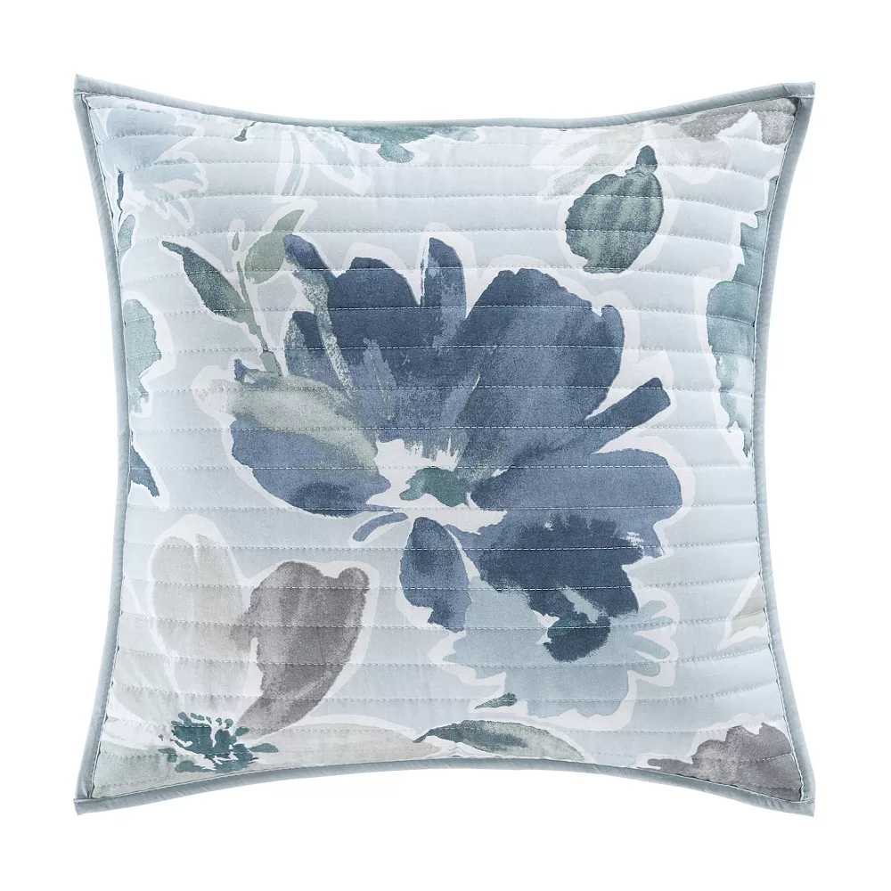 Add a trendy look to your bed with this Five Queens Court Michelle Blue 18″ Square Quilted Decorative Throw Pillow.