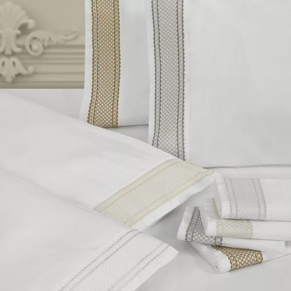 Add a luxurious look and feel to your bed with this Five Queens Court Montefiore Sheet Set or Pillowcase Set.