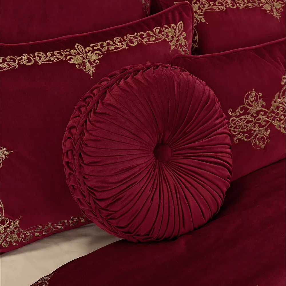 Add a regal touch to any bed, chair, or sofa with this tufted round throw pillow from Five Queens Court.