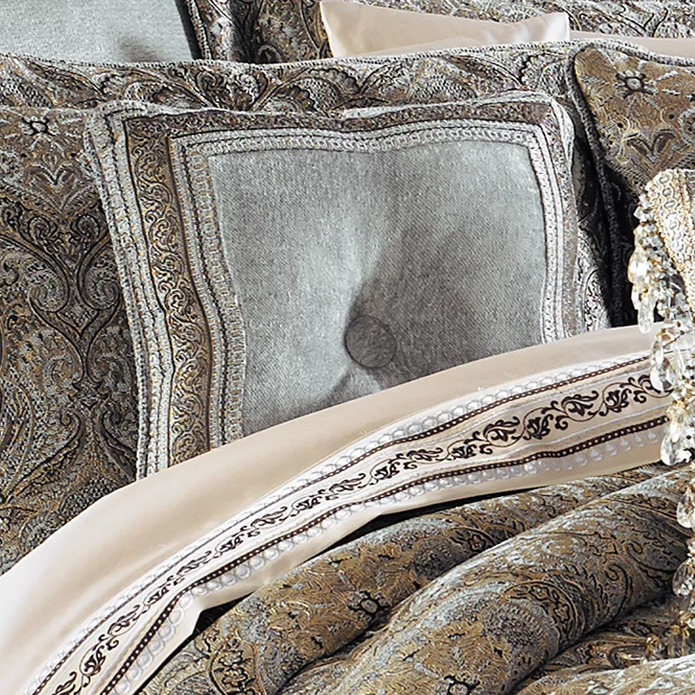 Showcase your inner designer by styling your bedroom with this trendy Five Queens Court Paulina Stone 16″ Square Decorative Throw Pillow.