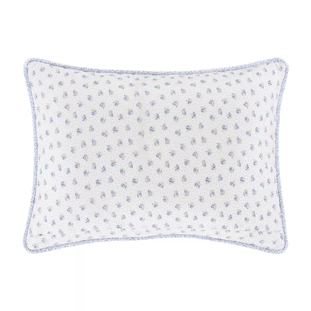 - The Phoebe quilt features an updated charming cottage patchwork design with small floral and geometric patterns in shades of blue, gray, taupe and white that transform this classic style into modern living.