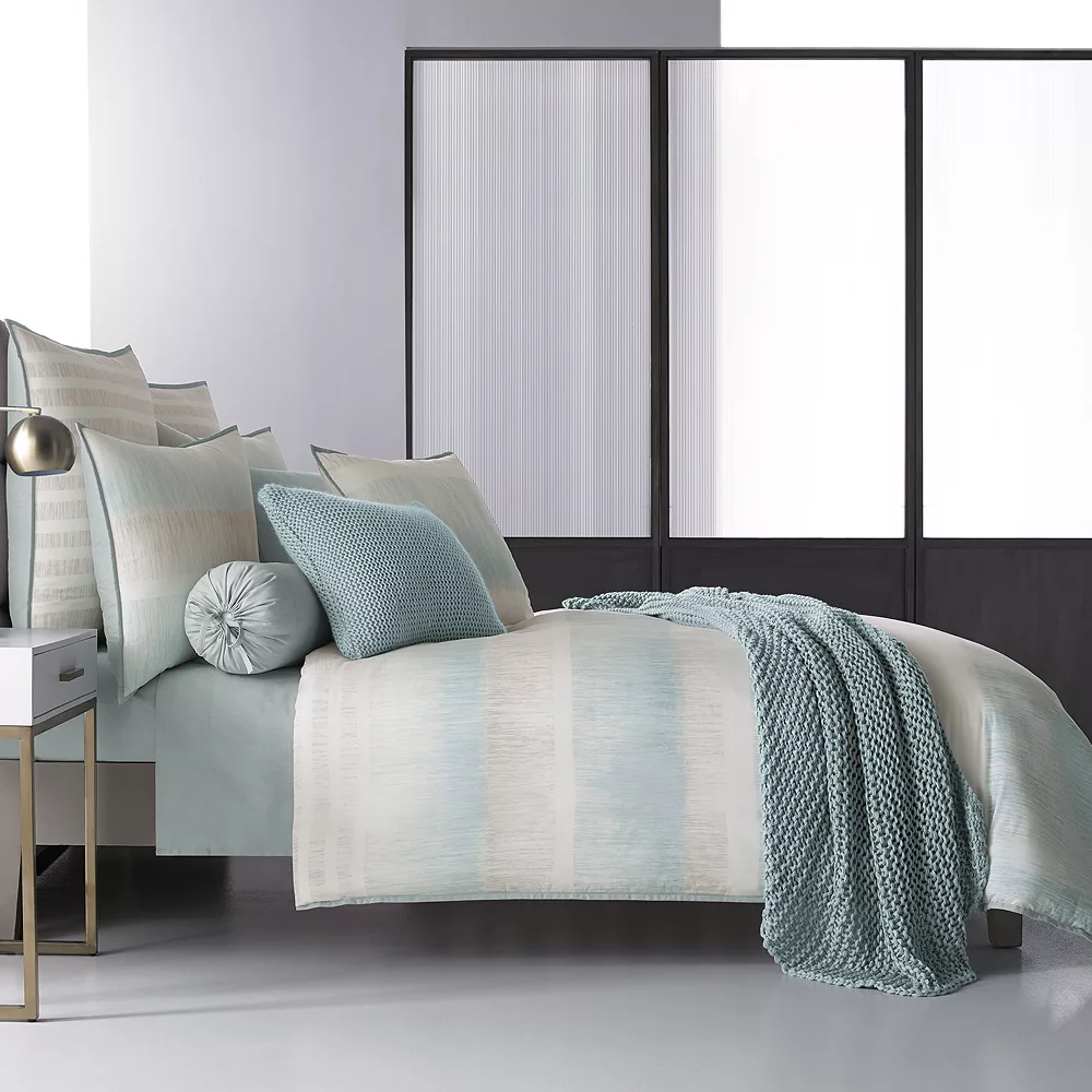 Create an effortlessly soothing atmosphere in your bedroom with this Five Queens Court Vance duvet cover. In aqua.